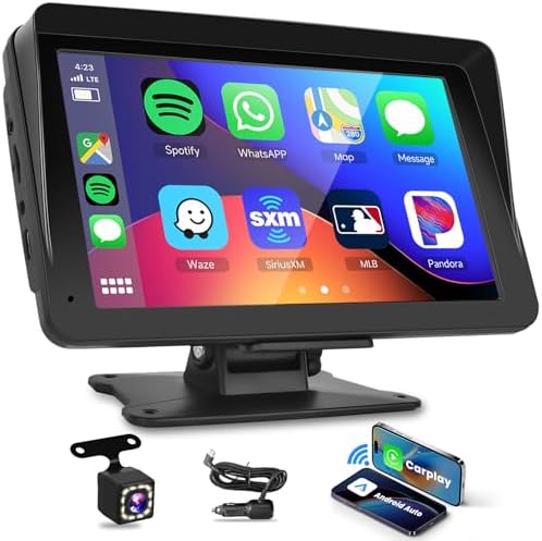 Wireless Carplay / Android Auto / Voice Control: This portable car video is compatible with Apple Carplay and Android Auto functions .You can simply get into your car and your Smartphone will automatically connect to the carplay screen; car stereo with carplay system can realize online map navigation and music playback through interconnection with mobile phones, as well as use Siri to control the wireless touch screen