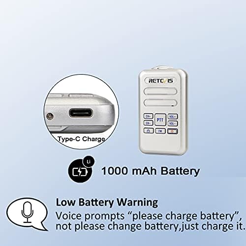Long lasting battery; 1000 mAh battery will last about 10-12 hours with normal daily usage; USB-C charging port are built in the 2 way radios;you can use power bank;PC;or car charger to charge it at any time